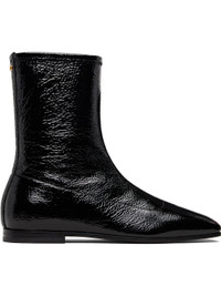 Mid-calf crinkled patent goatskin boots. · Square toe · Zip closure at inner side · Logo hardware at heel collar · Jersey lining · Stacked leather heel with rubber injection · Leather sole Supplier color: Nero Upper: goatskin. Sole: leather, rubber. Made in Italy 252807M228001