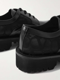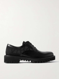 Glossed-Leather and Logo-Jacquard Satin Derby Shoes