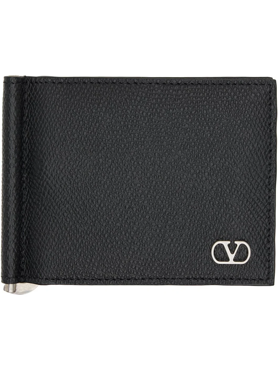 Pebble-grained calfskin bifold wallet. · Logo hardware at face · Six card slots and money clip at interior · Silver-tone hardware · H3.5" x W4.25" x D0.5" Supplier color: Nero Calfskin. Made in Italy 252807M164000