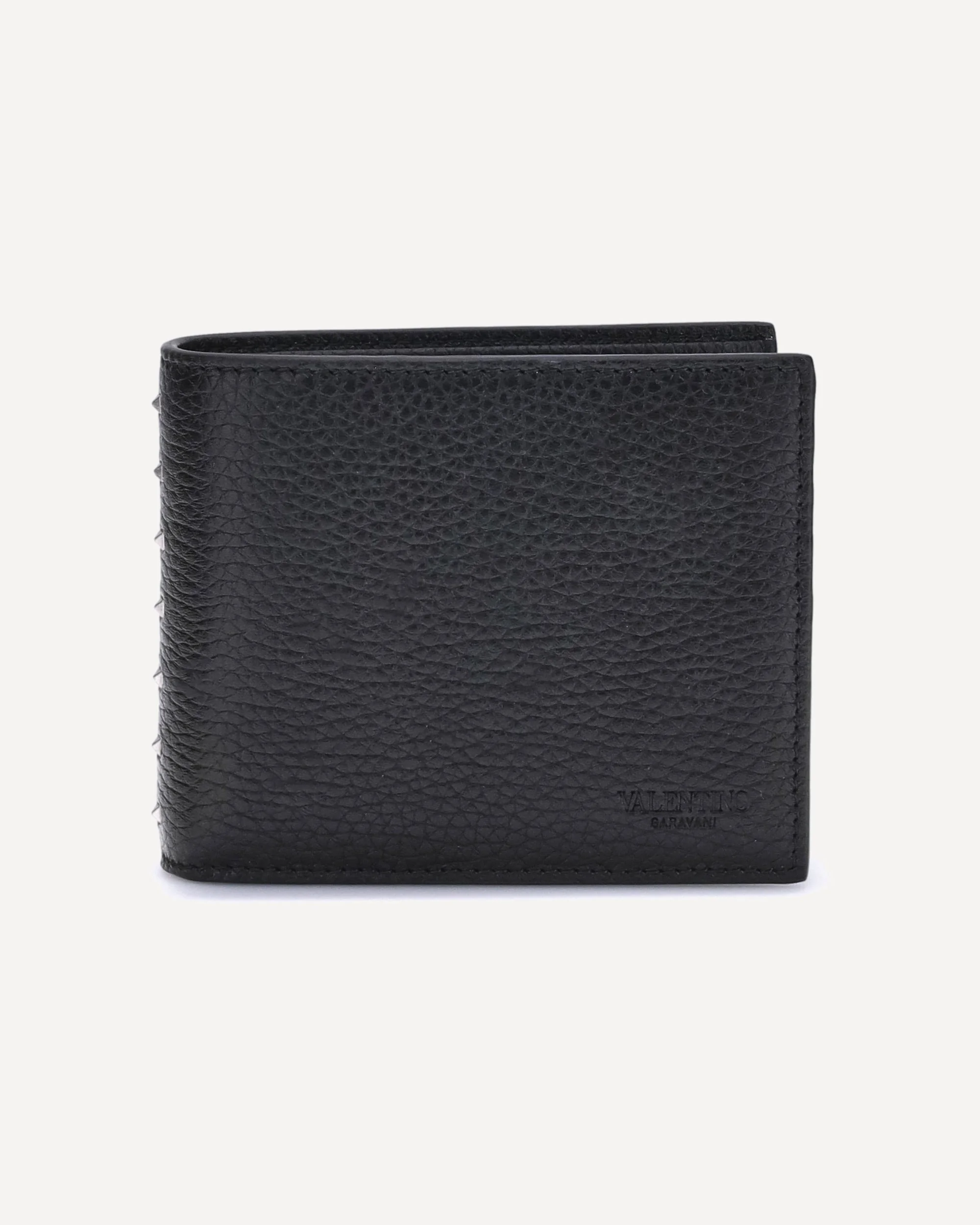 Valentino Garavani's grained leather Rockstud Wallet, a stylish and functional bifold model. Inside, it features card slots and a dedicated banknote compartment for practical and tidy organization. The design is embellished with the iconic Rockstud studs applied on the outer side panel, a distinctive symbol of the brand that gives a touch of grit and contemporary style. DETAILS - Sku: 7Y2P0AQ3PDX_0NO - Season: AW25 - Dimension: 11x11 - Composition: GENERAL 100% Calf Leather Bos Taurus - MADE IN ITALY