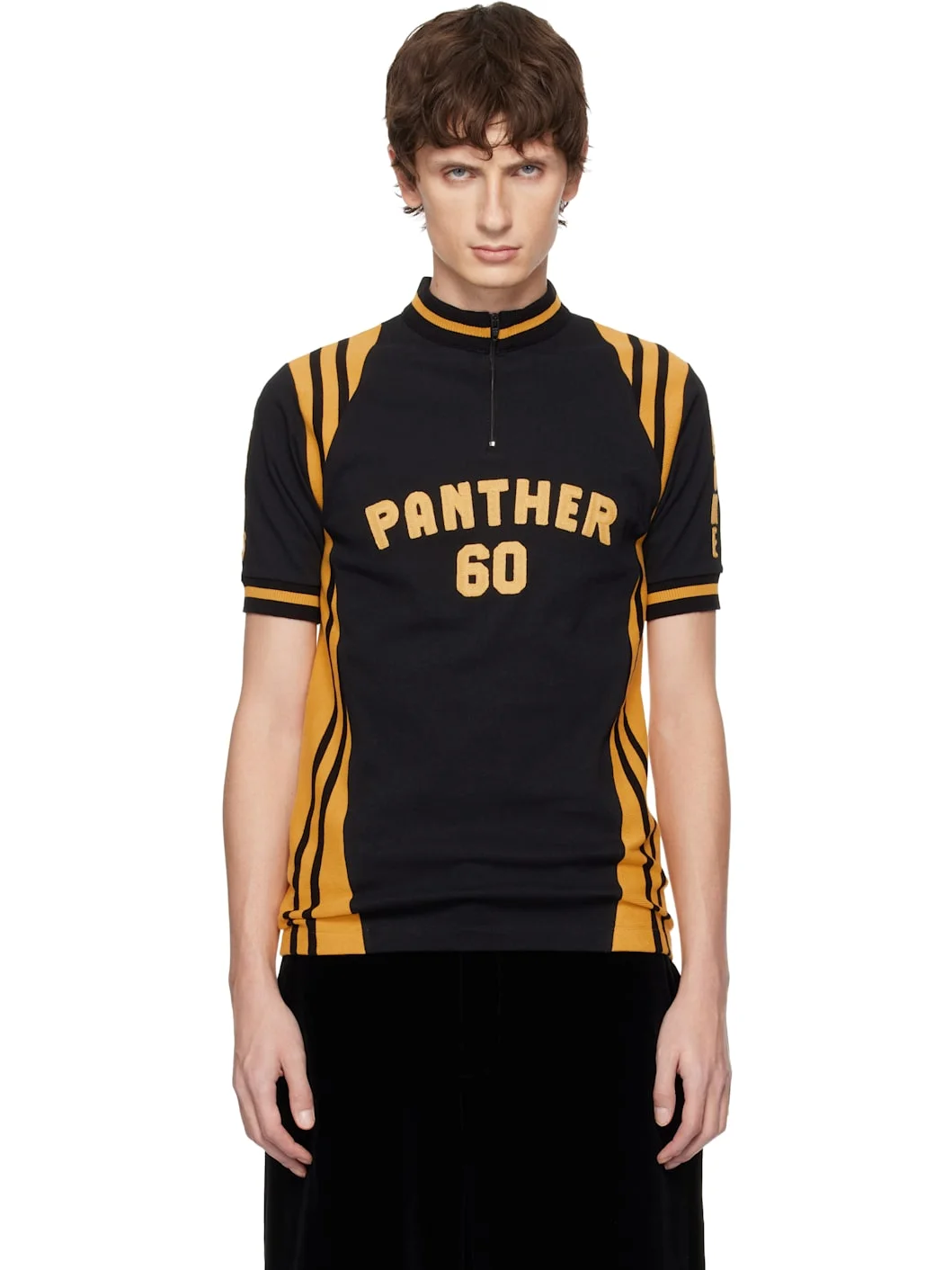 Cotton jersey and stretch knit cotton-blend polo. · Paneled construction · Stripes and embroidered text throughout · Rib-knit stand collar and cuffs · Half-zip closure · Logo at back Supplier color: Black/yellow Body 1: 100% cotton. Body 2: 90% cotton, 9% polyamide, 1% elastane. Trim 1: 50% acrylic, 50% wool. Trim 2: 100% polyester. Made in Italy 252476M212003
