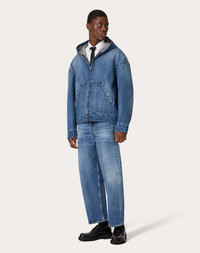 Valentino denim pants - Chino fit - VLogo Signature label on rear - Five pockets - Composition: 100% Cotton - Length: 98 cm / 38.6 in. in an Italian size 30 - Leg opening: 21.8 cm / 8.6 in. in an Italian size 30 - The model is 187 cm / 6'1" tall and wears an Italian size 30 - Made in Italy The look of the model is completed by Valentino Garavani Valentino Garavani Gentleglam Shoes. Product code: 5V0DE03YAEL_558