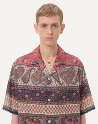 BOWLING SHIRT IN COTTON MUSLIN WITH VOYAGE IMAGINAIRE PRINT AND PASSEMENTERIE TRIMS