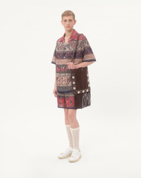 Valentino cotton muslin bowling shirt with all-over Voyage Imaginaire print and passementerie - Boxy fit - Voyage Imaginaire all-over print - Passementerie trim - Composition: 100% Cotton - Length: 73 cm / 28.7 in. from the back of the neck in an Italian size 46 - The model is 187 cm / 6'1" tall and wears a size 46 - Made in Italy The look of the model is completed by a Valentino Garavani Nellcote Bag and Valentino Garavani Royco Shoes. Product code: 6V0AA111AUW_M12