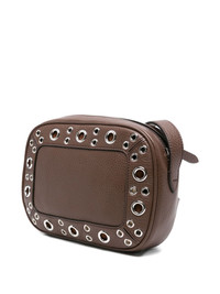 studded leather messenger bag Highlights - Brown - Calf leather - Metallic eyelets - Dome-shaped studs - Logo plaque - Zip fastening Made in Italy Composition Outer: Calf Leather 100% SIZE & FIT Model measurements Height 6 ft 1 in(1.85 m) Bust/Chest 35.82 in(91 cm) Hips 37.79 in(96 cm) Waist 29.13 in(74 cm) Measurement DEPTH 2.36 in(6 cm) HEIGHT 5.9 in(15 cm) WIDTH 8.26 in(21 cm)
