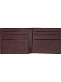 Pebble-grained calfskin bifold wallet. · Logo hardware at face · Eight card slots at interior · Two patch pockets and one note slot · Canvas lining · Silver-tone hardware · H3.5" x W4.25" x D1" Supplier color: Rosewood Calfskin. Made in Italy 252807M164002