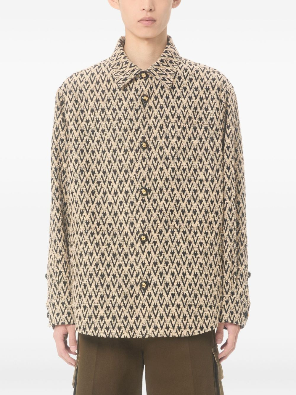 button-fastening shirt jacket Highlights - Valentino jacket - Beige - Jacquard pattern - Button closure - Side pockets - Breast pocket - The model is 187 cm / 6'1'' tall and wears an italian size 46 - The full look includes valentino garavani accessories. Made in Italy Composition Cotton 77%, Silk 14%, Polyamide 9% Washing instructions Read Manufacturer Guidelines
