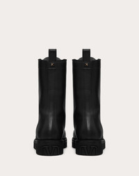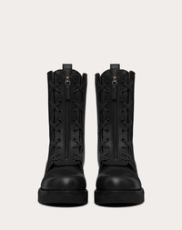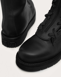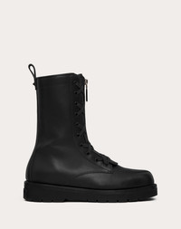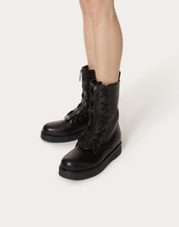Valentino Garavani XCOMBAT calfskin combat boots. - Leather pull tab on the back embellished with ruthenium-finish stud - Front fastening with laces and zipper - Rubber sole with stud motif - Heel height 40mm/1.6” with 25mm/1” platform - Leg height 23cm/9.1” for an Italian size 42 - Made in Italy Product Code: XY0S0F78GLF0NO
