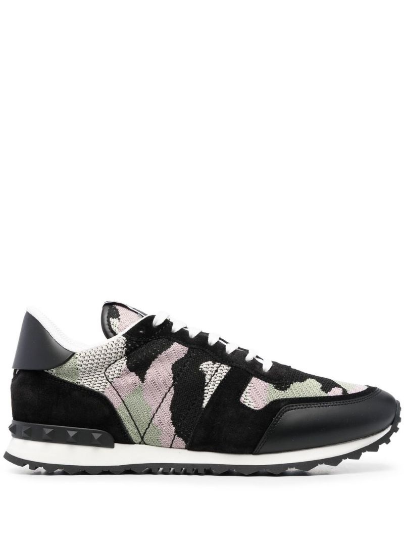 Camouflage Rockrunner low-top sneakers Valentino Garavani updates its Camouflage Rockrunner sneakers with suede and mesh panels. The subtle green and pink hues against the black suede. Made in Italy Composition Sole: Rubber 100% Outer: Fabric 100% Lining: Fabric 100% SIZE & FIT Measurement HEEL 1.2 in(3 cm) Sole height 0.8 in(2 cm)