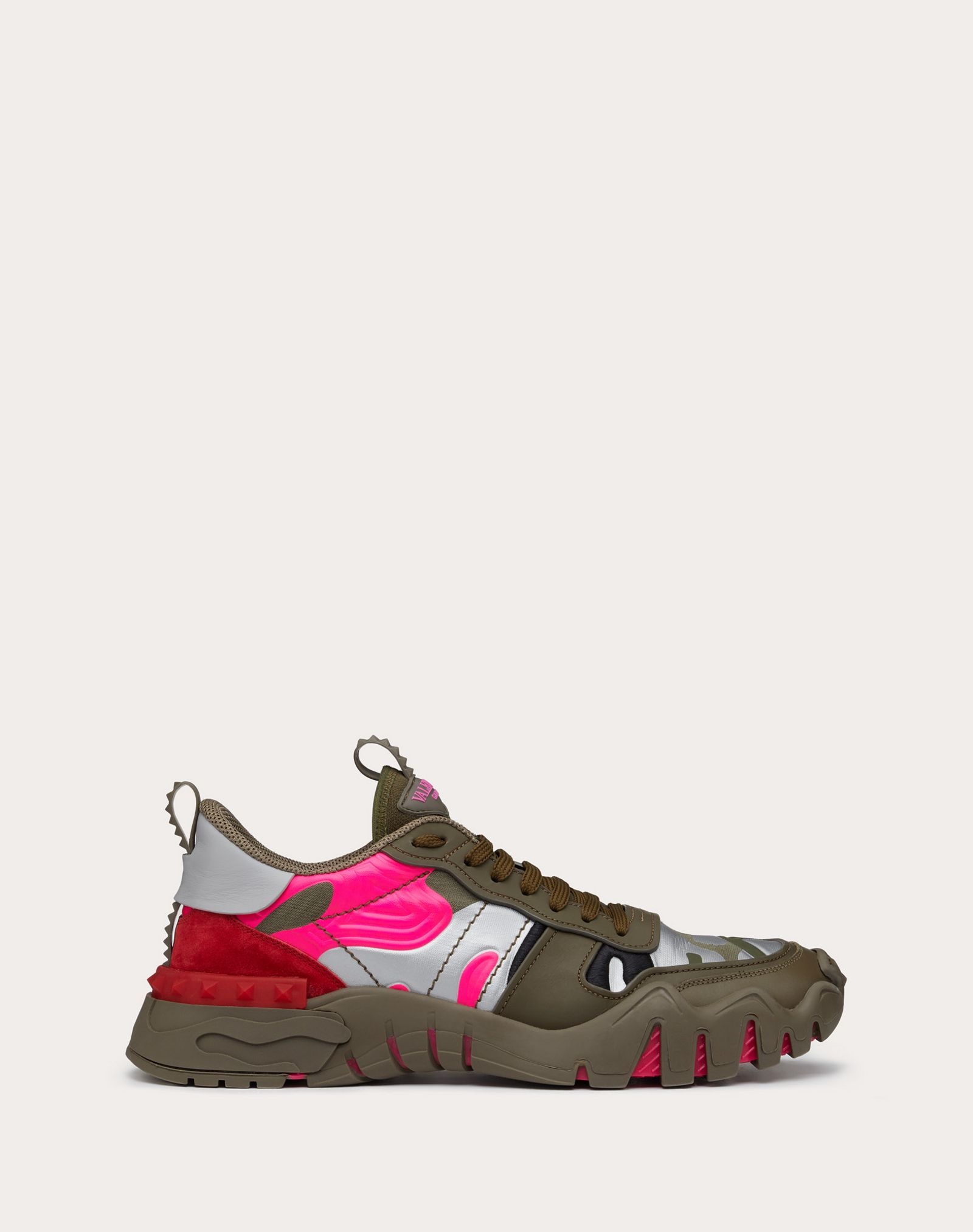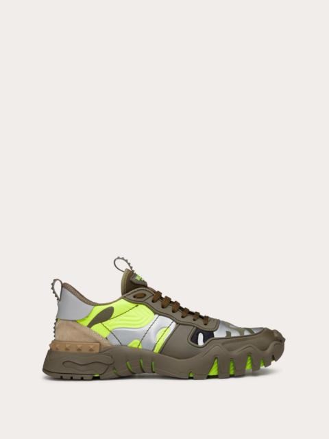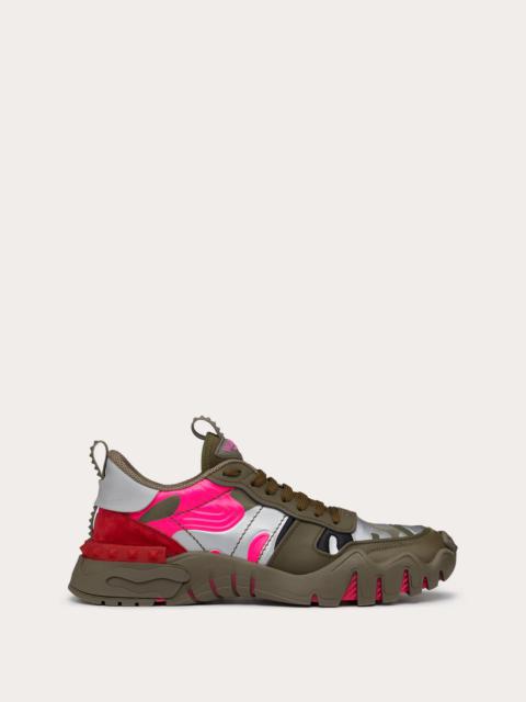 Valentino Garavani Camouflage Rockrunner Plus sneaker in fabric with raised details. - Rubber stud details - Rubber sole - Valentino Garavani logo on the tongue - Made in Italy