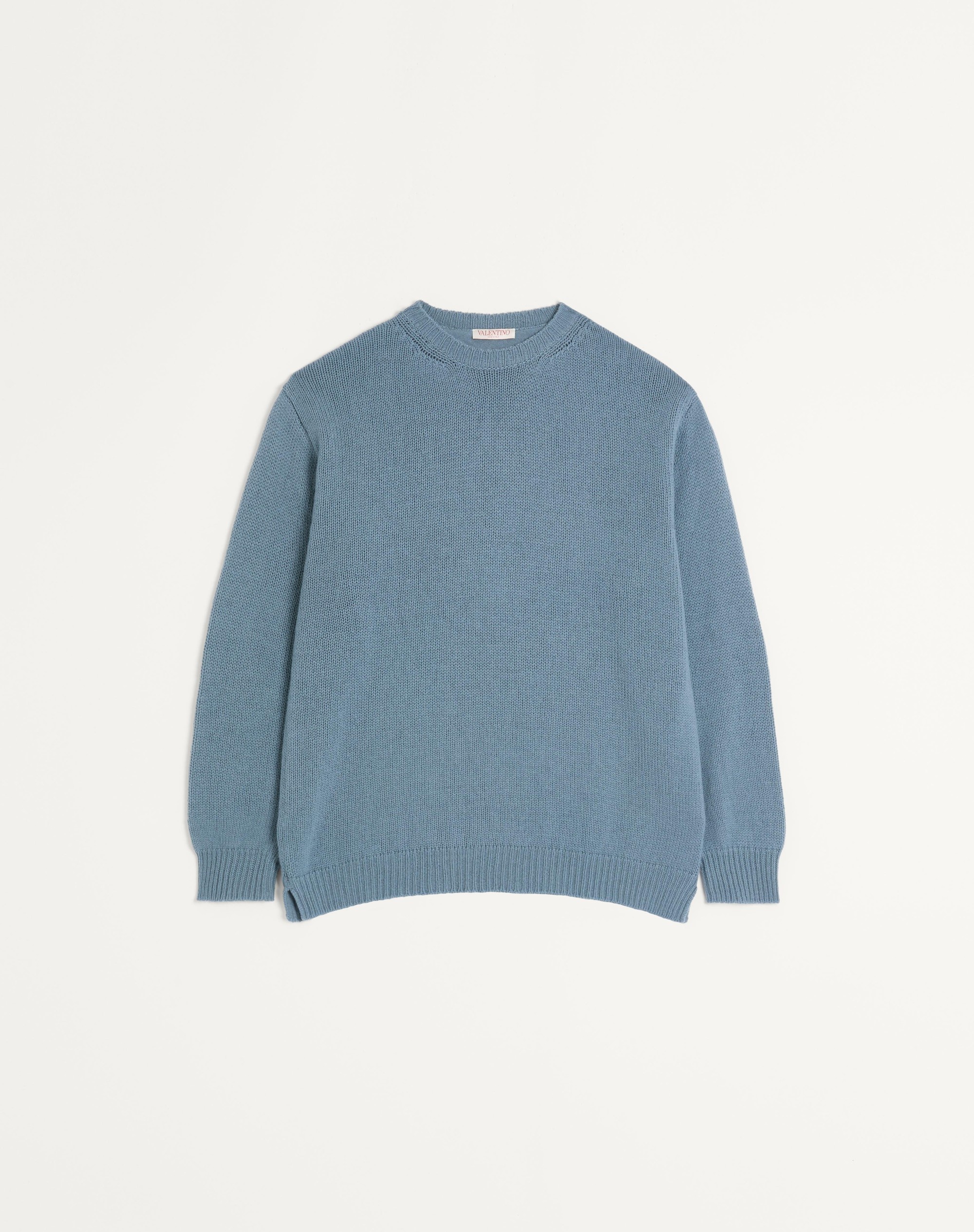 Valentino Cashmere crewneck sweater with stud - Oversized fit - Gauge: 7 - One stud on back collar band - Composition: 100% Cashmere - Length: 70 cm / 27.6 in. from the back of the neck in size M - The model is 187 cm / 6'1" tall and wears a size M - Made in Italy The look of the model is completed by Valentino Garavani Rockstud Shoes. Product code: 3V3KC26X9JP_S02