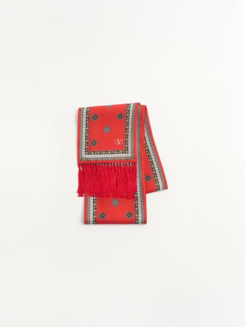Chamber bandeau scarf in printed silk with fringe - Composition: 100% silk - Chamber print - Fringe detail - Size: 15 x 180 cm / 5.9x70.9 in. - Dry clean - Made in Italy Product code: 6Y2E600ARME_RDM