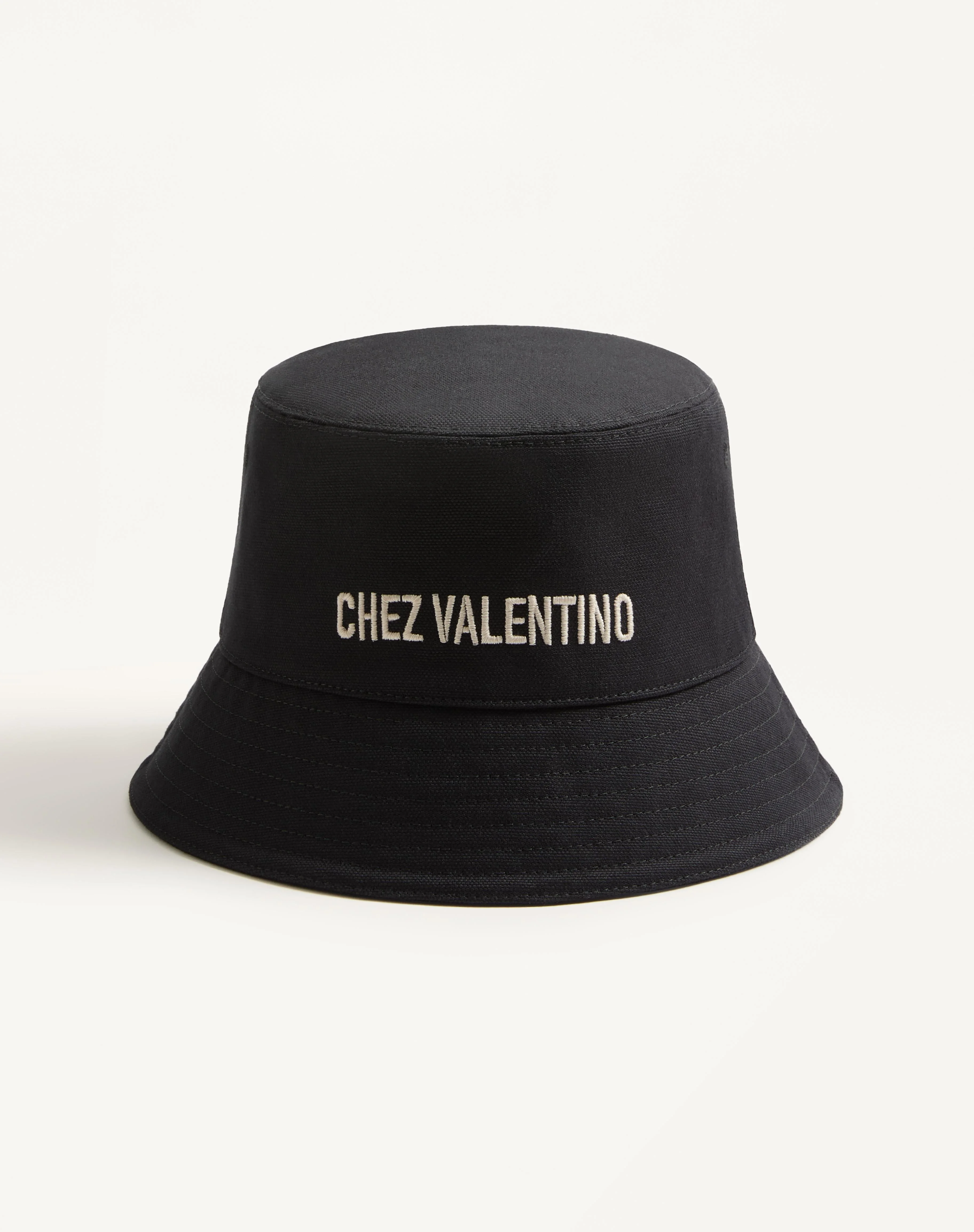 Chez Valentino cotton bucket hat with embroidery. - Composition: 100% cotton - Chez Valentino embroidery - Available in sizes: 57 (S) - 58(M) - 59 (L) - 60 (XL) - Made in Italy Product code: 7Y2HGA11FVH_9RA