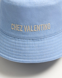 CHEZ VALENTINO DENIM BUCKET HAT WITH EMBROIDERY