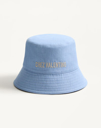 Chez Valentino denim bucket hat with embroidery. - Composition: 100% cotton - Chez Valentino embroidery - Available in sizes: 57 (S) - 58 (M) - 59 (L) - 60 (XL) - Made in Italy Product code: 7Y2HGA11HIK_DYS