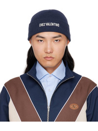 Navy 'Chez Valentino' Knitted Wool Beanie