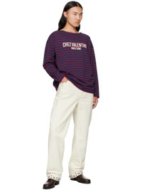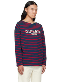 Red & Navy 'Chez Valentino' Print Long-Sleeved Cotton T-shirt