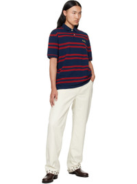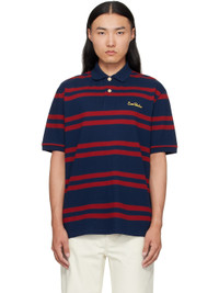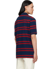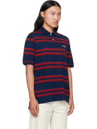 Cotton pique polo. · Stripes throughout · Rib-knit spread collar and cuffs · Two-button placket · Logo embroidered at chest · Tennis-tail hem Supplier color: Blue/Red 100% cotton. Made in Italy 252476M212001