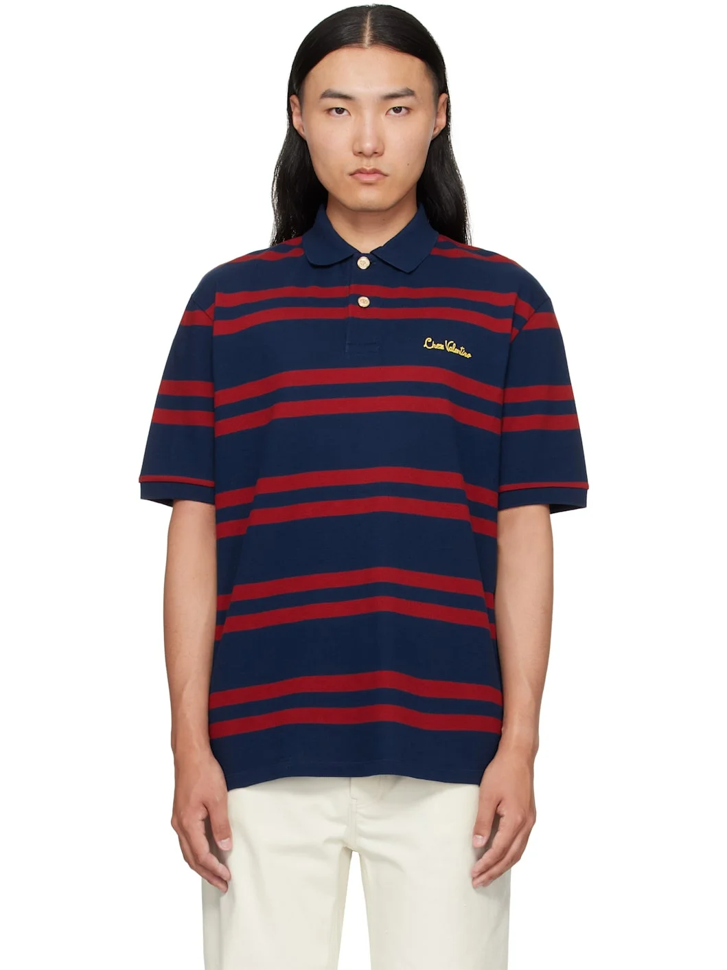 Red & Navy 'Chez Valentino' Embroidery Cotton Piqué Polo