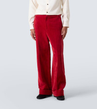 The most established Italian Maison de Couture, Valentino has become a symbol of crafting excellence, creativity, and uniqueness. Made from cotton and linen velvet, these pants are a wide-leg pair. Product Details - Material: 59% cotton, 41% linen - Care instructions: dry clean - Made in Italy - Designer color name: Crab Red - Item color: red - Pockets: slant pockets, welt pockets - Pocket lining: 100% cotton - Closure: zipper fly, button and hook fastenings - Hem: cuffed - Contains non-textile parts of animal origin - Belt loops - Item number: P01041280 Size & Fit - True to size - Non-stretchy fabric - Wide-leg - The model in the picture is 185cm-6'1" and wearing a size 50