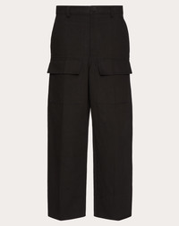 Valentino cargo pants in cotton canvas - Regular fit - Two side pockets - Two front pockets with flap - Two back pockets Composition: 100% Cotton - Length: 102 cm / 40.1 in. in an Italian size 46 - Leg opening: 27.5 cm / 10.8 in. in an Italian size 46 - The model is 187 cm / 6'1" tall and wears an Italian size 46 - Made in Italy The look of the model is completed by a Valentino Garavani The Bold Edition Bag and Valentino Garavani Valentino Garavani Gentleglam Shoes. Product code: 5V0REB75AET_0NO