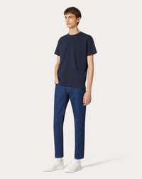 Valentino Cotton crewneck T-shirt with Black Untitled studs - Regular fit - Black Untitled stud appliques on neck - Composition: 100% Cotton - Length: 70 cm / 27.5 in. from the back of the neck in a size M - The model is 187 cm / 6'1" tall and wears a size M - Made in Italy The look of the model is completed by Valentino Garavani VLogo Pace Shoes. Product code: 4V3MG08X959_598