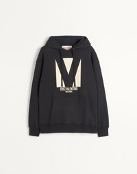 Cotton sweatshirt with hood and Chez Valentino print - Loose fit - Chez Valentino print on the chest - Elasticated ribbed trim - Drawstring hood - Composition: 100% Cotton - Length: 76 cm / 29.9 in. from the back of the neck in a size M - The model is 187 cm / 6'1" tall and wears a size XL - Made in Italy The look of the model is completed by a Valentino Garavani Antibes Bag and Valentino Garavani VLogo Signature Shoes. Product code: 6V3MF28NAQA_0NO