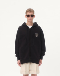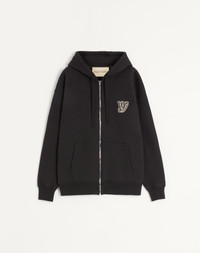 Valentino hooded cotton sweatshirt with VG patch - Loose fit - Embroidered VG patch on the left breast as worn - Zipper closure - Elasticated ribbed trim - Composition: 100% Cotton - Length: 75 cm / 29.5 in. from the back of the neck in a size M - The model is 187 cm / 6'1" tall and wears a size M - Made in Italy The look of the model is completed by a Valentino Garavani Viva Superstar Bag and Valentino Garavani Royco Shoes. Product code: 7V3MF29PB36_0NO