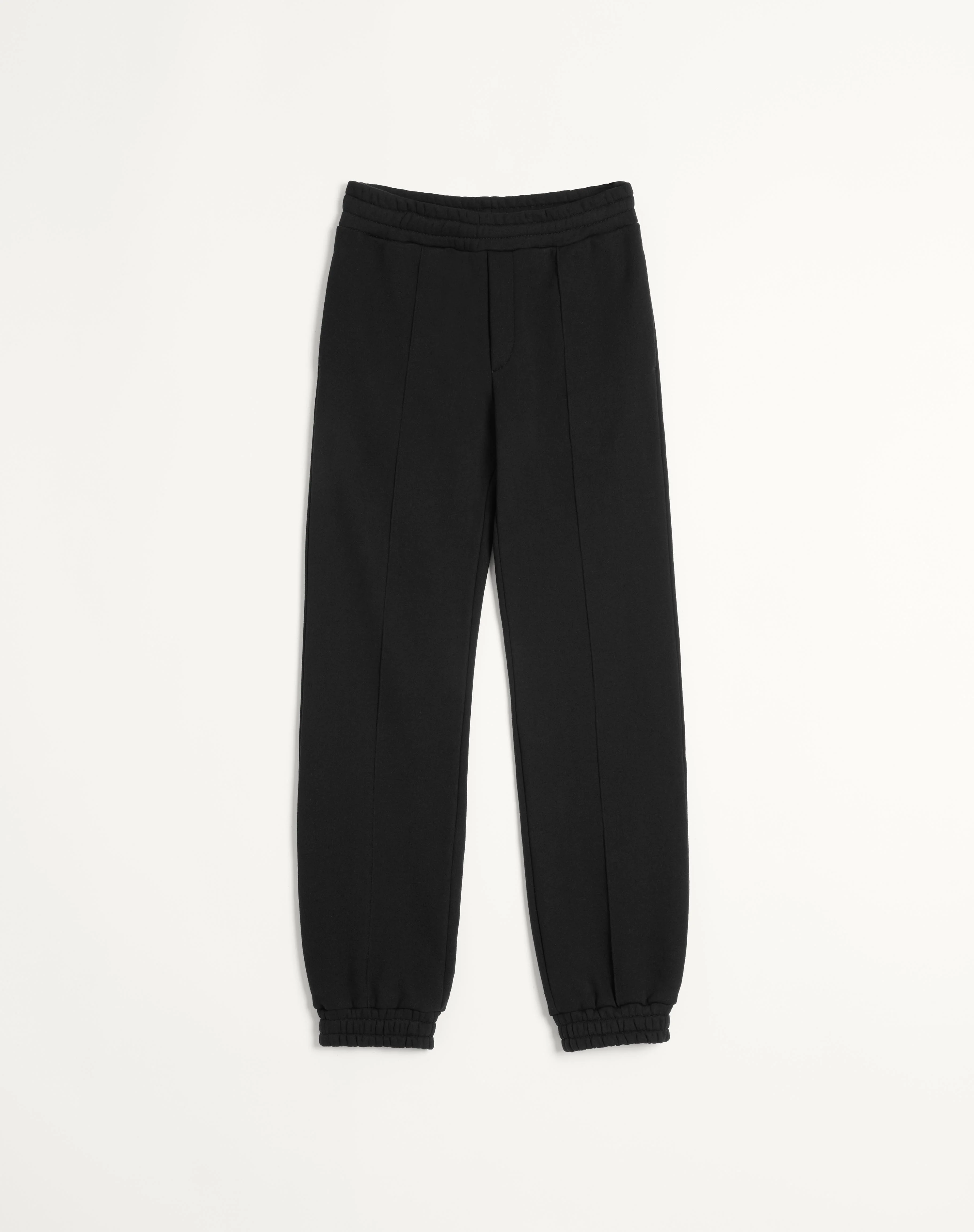 Valentino cotton joggers with Chez Valentino patch - Regular fit - Embroidered Chez Valentino patch on the back pocket - Two side pockets - One back pocket Elasticated cuffs - Composition: 100% Cotton - Length: 111 cm / 43.7 in. in a size M - Leg opening: 16.5 cm / 6.5 in. in a size M - The model is 187 cm / 6'1" tall and wears a size M - Made in Italy The look of the model is completed by Valentino Garavani Chromathon Shoes. Product code: 6V3MD04YARH_0NO