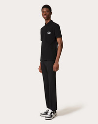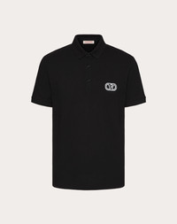 Valentino Polo shirt in cotton pique with VLogo Signature patch - Regular fit - VLogo Signature patch embroidery on left breast as worn - Ribbed collar and sleeve hem - Composition: 100% Cotton - Length: 70 cm / 27.5 in. from the back of the neck in size M - The model is 187 cm / 6'1" tall and wears a size M - Made in Italy The look of the model is completed by Valentino Garavani One Stud Shoes. Product code: 5V3MH01K954_0NO