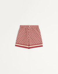 Valentino Bermuda shorts in cotton poplin with Toute la V print - Regular fit - All-over Toute la V print - Two side pockets - One back pocket - Composition: 100% Cotton - Length: 45.5 cm / 17.9 in. in an Italian size 46 - Leg opening: 36.6 cm / 14.4 in. in an Italian size 46 - The model is 187 cm / 6'1" tall and wears an Italian size 46 - Made in Italy The look of the model is completed by a Valentino Garavani Nellcote Bag and Valentino Garavani Palm Avenue Shoes. Product code: 7V3RDE38B20_CLT
