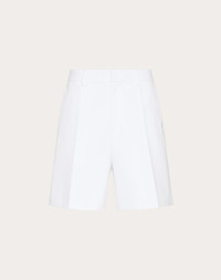 Valentino bermuda shorts in cotton poplin bonded with scuba fabric - Garment made using the heat-sealing technique: the outer cotton fabric is joined and bonded with an adhesive to an inner layer of neoprene scuba fabric - Regular fit - Bonded with scuba fabric - Two side pockets - Two back pockets - Composition: 100% Cotton - Length: 45 cm / 17.7 in. in an Italian size 46 - Leg opening: 35.5 cm / 14.0 in. an Italian size 46 - The model is 187 cm / 6'1" tall and wears an Italian size 46 - Made in Italy The look of the model is completed by a Valentino Garavani Valentino Garavani Le Noir Bag and Valentino Garavani Valentino Garavani Runboot Shoes. Product code: 5V3RDD12A9T_0BO