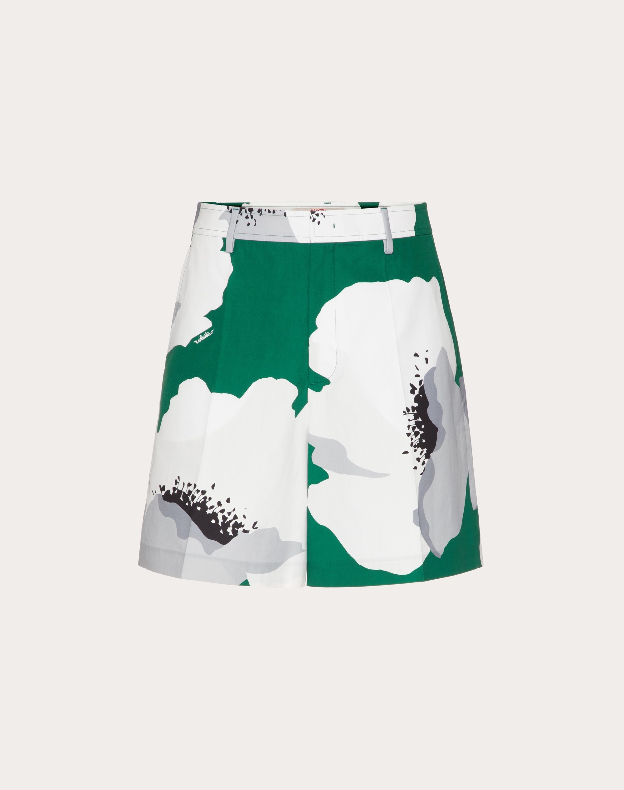 Valentino Bermuda shorts in cotton poplin with Valentino Flower Portrait print - Regular fit - All-over Valentino Flower Portrait print - Two side pockets - Two pockets on the back - Composition: 100% Cotton - Length: 45 cm / 17.7 in. in an Italian size 46 - Leg opening: 35 cm / 13.8 in. in an Italian size 46 - The model is 187 cm / 6'1" tall and wears an Italian size 46 - Made in Italy The look of the model is completed by Valentino Garavani True Act Shoes. Product code: 4V0RDD12A2L_ZXU Valentino Bermuda shorts in cotton poplin with Valentino Flower Portrait print - Regular fit - All-over Valentino Flower Portrait print - Two side pockets - Two pockets on the back - Composition: 100% Cotton - Length: 45 cm / 17.7 in. in an Italian size 46 - Leg opening: 35 cm / 13.8 in. in an Italian size 46 - The model is 187 cm / 6'1" tall and wears an Italian size 46 - Made in Italy The look of the model is completed by Valentino Garavani True Act Shoes. Product code: 4V0RDD12A2L_ZXU