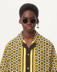 Valentino bowling shirt in cotton poplin with Bulles Royales print - Boxy fit - Bulles Royales all-over print - Composition: 100% Cotton - Length: 73.5 cm / 28.9 in. from the back of the neck in an Italian size 46 - The model is 187 cm / 6'1" tall and wears a size 46 - Made in Italy The look of the model is completed by a Valentino Garavani Nellcote Bag and Valentino Garavani VLogo Signature Shoes. Product code: 7V3AA111AYQ_CLP