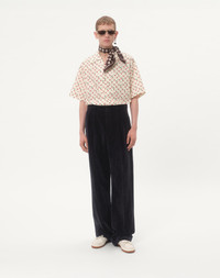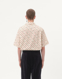 Valentino bowling shirt in cotton poplin with Cherryfic print - Boxy fit - All-over Cherryfic print - Composition: 100% Cotton - Length: 73.5 cm / 28.9 in. from the back of the neck in an Italian size 46 - The model is 187 cm / 6'1" tall and wears a size 46 - Made in Italy The look of the model is completed by a Valentino Garavani Nellcote Bag and Valentino Garavani Palm Avenue Shoes. Product code: 7V3AA111B0B_BMY
