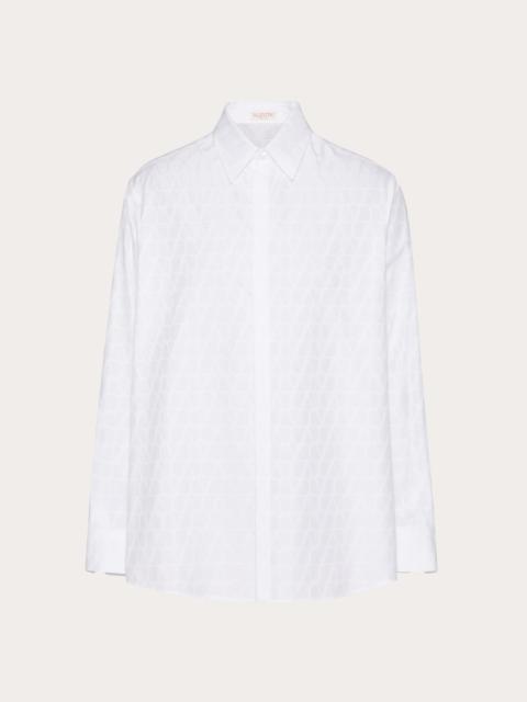 Valentino cotton poplin shirt with all-over Toile Iconographe pattern - Regular fit - All-over Toile Iconographe jacquard pattern - Concealed button closure - Composition: 100% Cotton - Length: 82 cm / 32.3 in. from the back of the neck in an Italian size 39 - The model is 187 cm / 6'1" tall and wears an Italian size 39 - Made in Italy The look of the model is completed by Valentino Garavani One Stud Shoes. Product code: 4V3ABR959VC_MXM