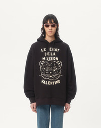 Valentino cotton sweatshirt with Le Chat De La Maison patch - Loose fit - Le Chat De La Maison patch embroidered - Elasticated ribbed trim - Composition: 100% Cotton - Length: 78 cm / 30.7 in. from the back of the neck in a size XXL - The model is 187 cm / 6'1" tall and wears a size XXL - Made in Italy The look of the model is completed by a Valentino Garavani Nellcote Bag and Valentino Garavani Bowshire Shoes. Product code: 7V3MF28NB33_9RA