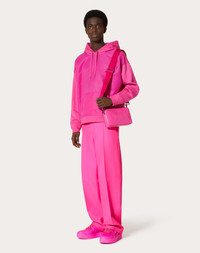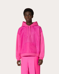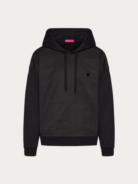 Hooded cotton sweatshirt with nylon panel and stud detail on chest - Regular fit - Appliqué nylon panel on front - Roman Stud on chest - One front pocket - Ribbed elasticated trim - Drawstring hood - Composition: 94% Cotton, 6% Polyamide Length: 68 cm / 27.7 in. from the back of the neck in size M -The model is 187 cm/ 6'1" tall and wears a size M - Made in Italy Product code: VMF22W8Y3_UWT