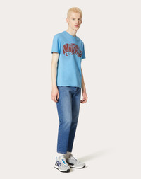 Cotton T-shirt with Valentino Surf print - Regular fit - Valentino Surf print on chest -Composition: 100% Cotton - Length: 72 cm / 28.3 in. from the back of the neck in size M - The model is 187 cm / 6'1" tall and wears a size M - Made in Italy The look of the model is completed by a Valentino Garavani Bag and Valentino Garavani Shoes. Product code: 3V3MG10V9KA_C43