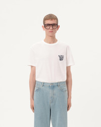 Valentino cotton T-shirt with VG patch - Regular fit - Embroidered VG patch on left breast as worn - Composition: 100% Cotton - Length: 70 cm / 27.6 in. from the back of the neck in a size M - The model is 187 cm / 6'1" tall and wears a size M - Made in Italy Product code: 7V3MG10VB2W_A03