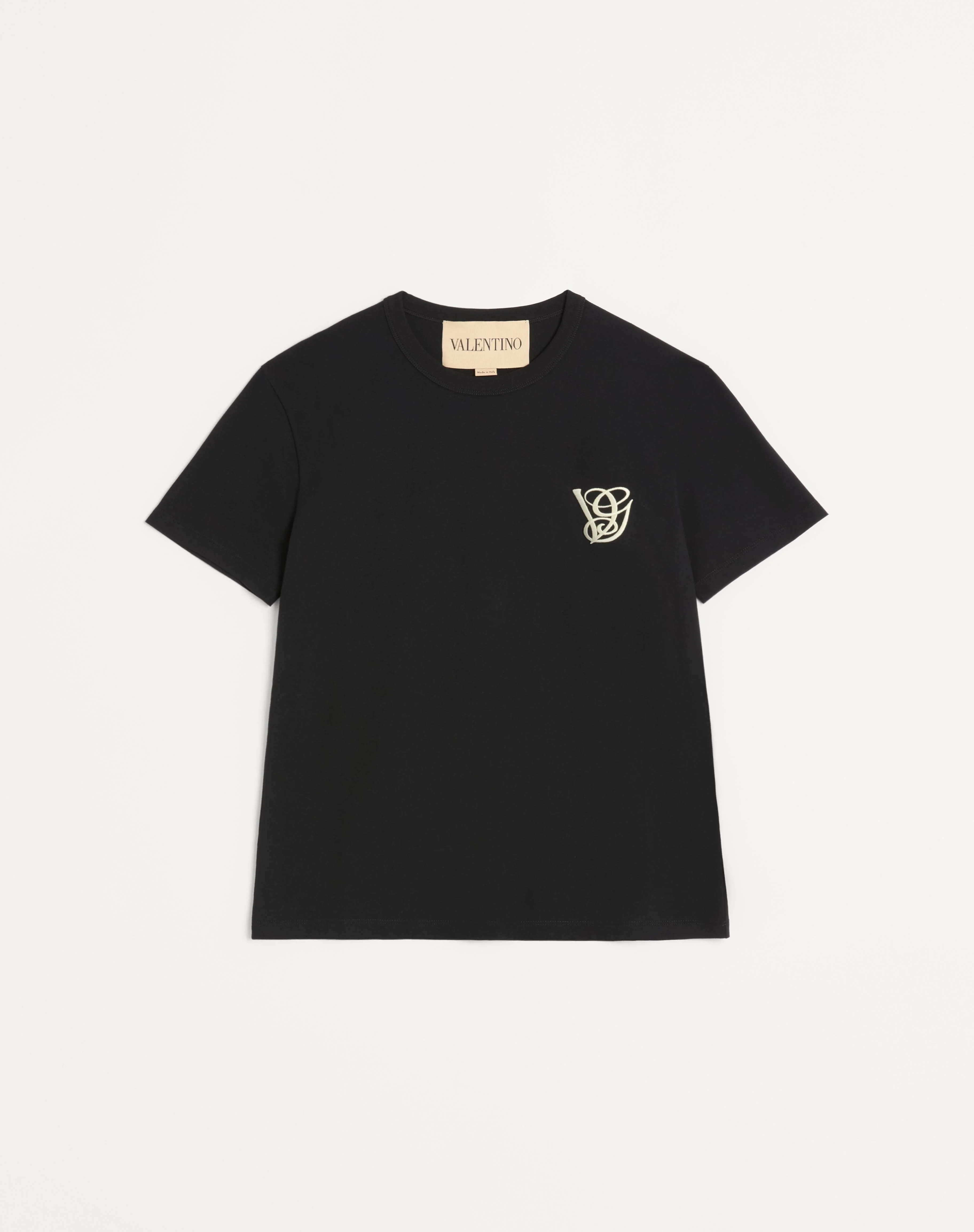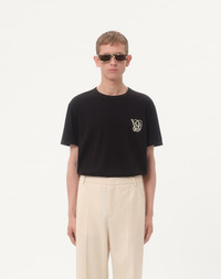 Valentino cotton T-shirt with VG patch - Regular fit - Embroidered VG patch on left breast as worn - Composition: 100% Cotton - Length: 70 cm / 27.6 in. from the back of the neck in a size M - The model is 187 cm / 6'1" tall and wears a size M - Made in Italy Product code: 7V3MG10VB2W_0NO