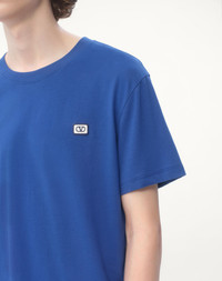 Valentino cotton T-shirt with VLogo patch - Regular fit - VLogo Signature patch on left breast as worn - Composition: 100% Cotton - Length: 70 cm / 27.6 in. from the back of the neck in a size M - The model is 187 cm / 6'1" tall and wears a size M - Made in Italy The look of the model is completed by a Valentino Garavani 9TO5 Bag and Valentino Garavani Bay By Bay Shoes. Product code: 6V3MG10VAQ8_B01