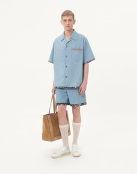 Valentino denim bermuda shorts with floral print hem - Regular fit - Floral print hem - Two side pockets - Two back pockets - Composition: 100% Cotton - Length: 45 cm / 17.7 in. in an Italian size 30 - Leg opening: 33.5 cm / 13.1 in. in an Italian size 30 - The model is 187 cm / 6'1" tall and wears an Italian size 30 - Made in Italy The look of the model is completed by a Valentino Garavani Nellcote Bag and Valentino Garavani Royco Shoes. Product code: 6V0DD04HALM_508