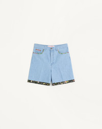 DENIM BERMUDA SHORTS WITH FLORAL PRINT HEM
