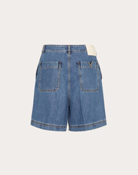 Valentino denim Bermuda shorts with metallic V Detail - Regular fit - Metallic V Detail on back pocket - Five pockets - Composition: 100% Cotton - Length: 44.5 cm / 17.5 in. in an Italian size 30 - Leg opening: 36 cm / 14.1 in. in an Italian size 30 - The model is 187 cm / 6'1" tall and wears an Italian size 30 - Made in Italy The look of the model is completed by Valentino Garavani Valentino Garavani Runboot Shoes. Product code: 5V3DD03FAA3_558