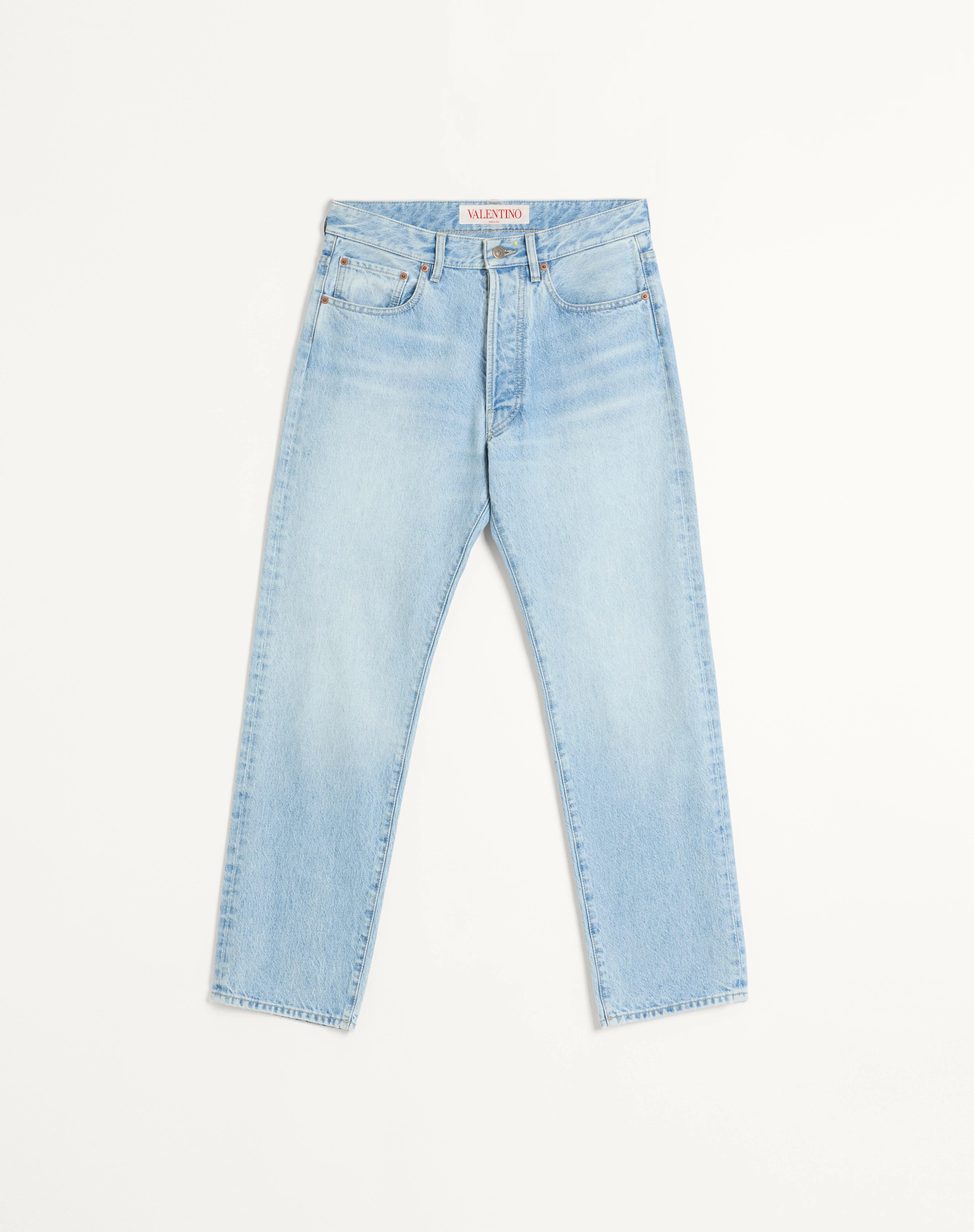 Valentino denim pants - Regular fit - Five pockets - Composition: 100% Cotton - Length: 99 cm / 38.9 in. in an Italian size 30 - Leg opening: 20.5 cm / 8.0 in. in an Italian size 30 - The model is 187 cm / 6'1" tall and wears an Italian size 30 - Made in Italy The look of the model is completed by a Valentino Garavani 9TO5 Bag and Valentino Garavani VLogo Signature Shoes. Product code: 6V3DE04CAP4_508
