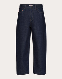 Valentino denim pants - Chino fit - VLogo Signature label on rear - Five pockets - Composition: 100% Cotton - Length: 98 cm / 38.5 in. in an Italian size 30 - Leg opening: 21.8 cm / 8.5 in. in an Italian size 30 - The model is 187 cm / 6'1" tall and wears an Italian size 30 - Made in Italy The look of the model is completed by a Valentino Garavani The Bold Edition Bag and Valentino Garavani Valentino Garavani Gentleglam Shoes. Product code: 5V0DE03YAEM_528