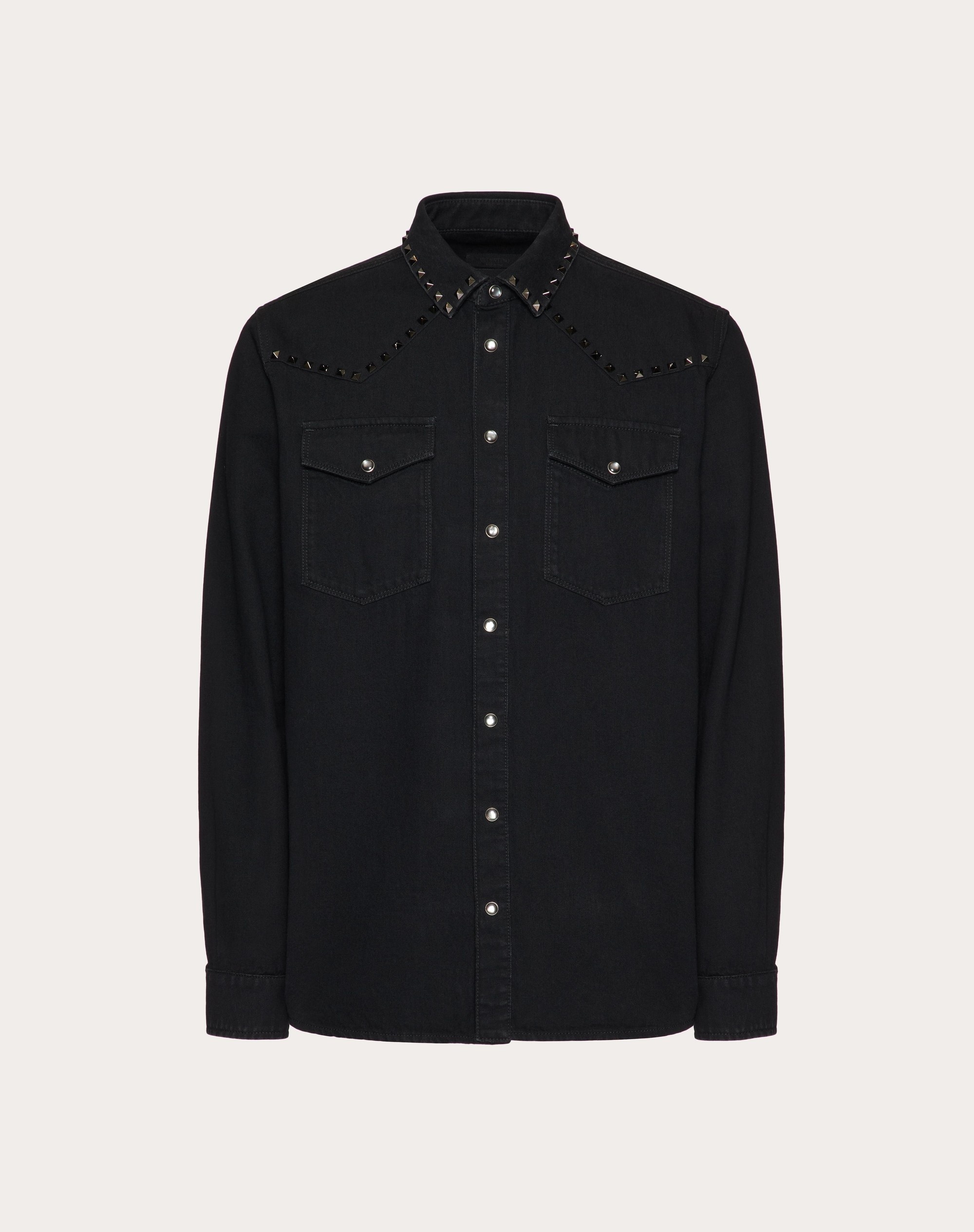 Valentino Denim shirt with Black Untitled studs - Slim fit Black Untitled studs on collar and shoulders - Button fastening - Two breast pockets with flap and button closure - Composition: 100% Cotton - Length: 78.5 cm / 30.9 in. from the back of the neck in an Italian size 46 - The model is 187 cm / 6'1" tall and wears an Italian size 46 - Made in Italy Product code: 2V3DB93J94D_0NO Valentino Denim shirt with Black Untitled studs - Slim fit Black Untitled studs on collar and shoulders - Button fastening - Two breast pockets with flap and button closure - Composition: 100% Cotton - Length: 78.5 cm / 30.9 in. from the back of the neck in an Italian size 46 - The model is 187 cm / 6'1" tall and wears an Italian size 46 - Made in Italy Product code: 2V3DB93J94D_0NO