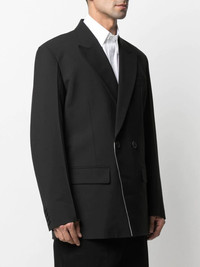 double-breasted blazer It's time to smarten up your style. With a classic double-breasted design, this wool-blend blazer from Valentino Garavani is the perfect way to do so. Now you're tailored to perfection. Highlights - Valentino ready to wear - Black - Wool-blend - Wide peak lapels - Long sleeves - Chest welt pocket - Double-breasted button fastening - Two side flap pockets Made in Italy Composition Lining: Cupro 100% Outer: Wool 66%, Viscose 34% SIZE & FIT Model measurements Height 6 ft 1 in(1.85 m) Bust/Chest 37.79 in(96 cm) Hips 37.4 in(95 cm) Waist 30.7 in(78 cm) Measurement CHEST 44.88 in(114 cm) SLEEVE LENGTH 25.98 in(66 cm) Shoulder Width 19.29 in(49 cm) WAIST 44.09 in(112 cm) FittingInformation This piece fits true to size. We recommend you get your regular size Cut for a loose fit Made with a mid-weight fabric Washing instructions Read Manufacturer Guidelines