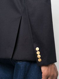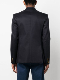 double-breasted cotton blazer Showcasing Valentino Garavani's penchant for tailoring, this black blazer is cut to a classic double-breasted silhouette. Polished gold-tone buttons engraved with the label’s VLogo signature trace the front. Highlights - Valentino ready to wear - Black - Cotton - Notched lapels - Chest welt pocket - Double-breasted button fastening - Long sleeves - English rear vents - Two front flap pockets Made in Italy Composition Outer: Cotton 100% Lining: Polyester 100%, Cupro 100% SIZE & FIT Model measurements Height 6 ft 1 in(1.85 m) Bust/Chest 34.6 in(88 cm) Hips 36.2 in(92 cm) Waist 27.2 in(69 cm) FittingInformation This piece fits true to size. We recommend you get your regular size Classic fit Made with a mid-weight non-stretch fabric